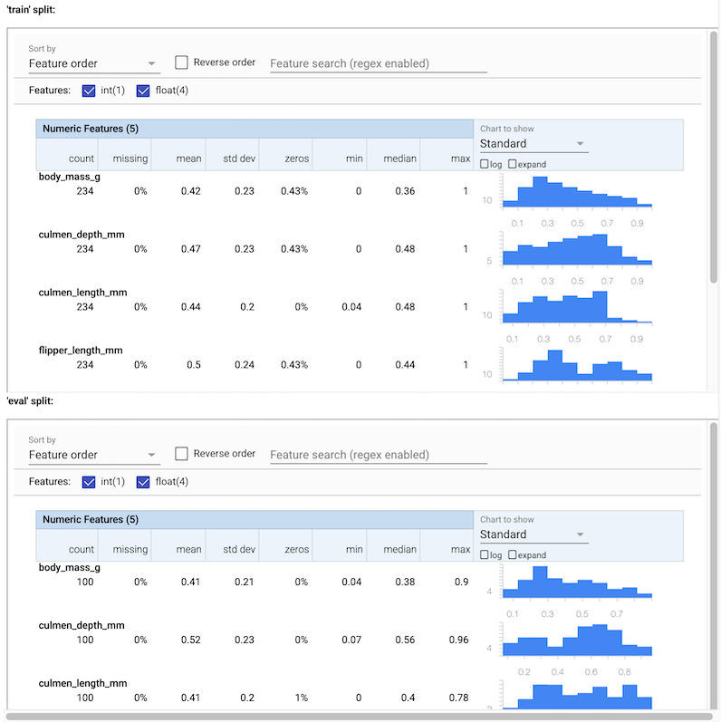 INFO:absl:Validation complete for split eval. Anomalies written to pipelines/penguin-tfdv/ExampleValidator/anomalies/5/Split-eval.